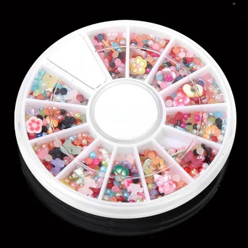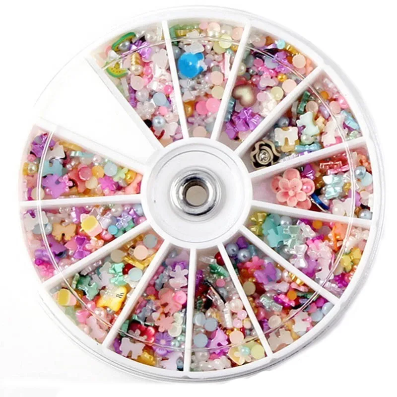 1200pcs Mixed 3D Nail Art Decorations Tips Glitters Flower Star Heart Rhinestones Slice Nail Tools Manicure+Wheel