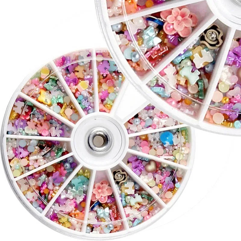 1200pcs Mixed 3D Nail Art Decorations Tips Glitters Flower Star Heart Rhinestones Slice Nail Tools Manicure +Wheel